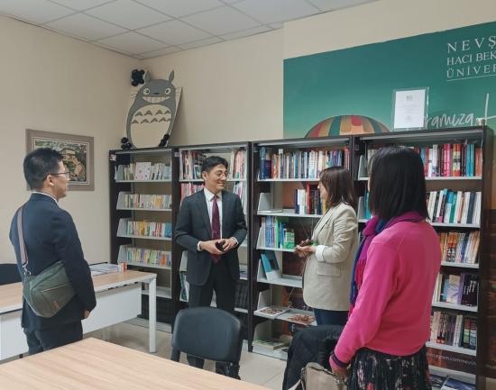 Shin Kawata, söyleşinin ardından Fen Edebiyat Fakültesi Dekanı Prof. Dr. H. Abdullah Şengül’ü makamında ziyaret etti. Doğu Dilleri ve Edebiyatları Bölüm Başkanı Doç. Dr. Sema Gökenç Gülez ve Dr. Öğr. Üyesi Ümmühan Sâre Uslu’nun da hazır bulunduğu görüşmede dostluk ilişkileri ve olası iş birlikleri ele alındı. Kawata, Japonca ve Japonya’ya olan ilginin artarak sürmesinin kendilerini memnun ettiğini belirterek üniversiteyle gelecekte yapılacak iş birliklerine açık olduklarını ifade etti.